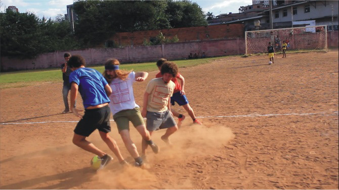 A Copa do mundo 2014 do MAPA:/ propôs um novo jogo. Inspirados pelo Futebol Trialético / Three sided football de Asger Jorn e pela tradição do futebol de várzea, Uma Copa do Mundo feita em um dia, num único jogo negociado até a exaustão. O formato do campo é o hexagonal. Oito seleções participando, todas representando países que não participaram da Copa do Mundo daquele ano. Começam o jogo três times em campo, com sete jogadores em cada. Como nas peladas, não tem juiz, nem bandeirinha, nem nada: tudo é combinado ali na hora. O campo é o de várzea, mais descampado que gramado, às margens do ribeirão arrudas, dividindo as várias paisagens da cidade. O sistema de substituição é o “de fora”: cansou, saiu. Entra outro no lugar. De outra seleção. Até que não existam mais times, apenas cores. O time que receber menos gols será o vencedor. Ou não.