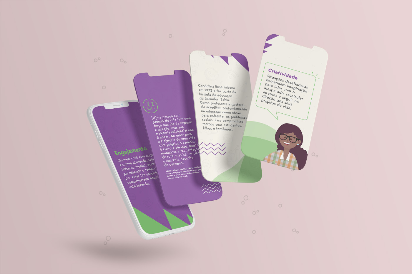 Uma formação via WhatsApp que foi desenvolvida pelo Instituto iungo em 2021 e que tive o prazer de elaborar toda a identidade visual pensada para apoiar quem trabalha com educação, na reflexão e construção de seus projetos de vida.